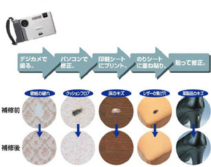 インスタントレタリングの一種ですが、壁やフローリングなどの傷を隠すのに使われます。
