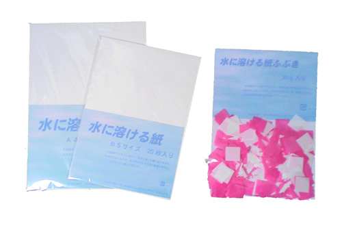 水に溶かすことのできる紙です。 木材パルプから出来ているので、土の上に放置すると雨水に溶けて土に還ります。 粉末状に溶けるので、排水管を詰まらせる心配はありません。 プリンタやコピー機で印刷できます。 機密文書に用いられることがあり、10秒程度で水に溶けるので、シークレットペーパーとも呼ばれています。 水に溶ける紙吹雪は、当店オリジナル商品です。 メール便でもお送りすることができますので、送料込の価格ではとても安価にご購入いただけます。 |