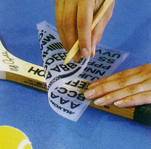 フィルムの転写したい部分を紙などに当てて擦ることにより、さまざまな字体の文字等を簡単に転写することができます。